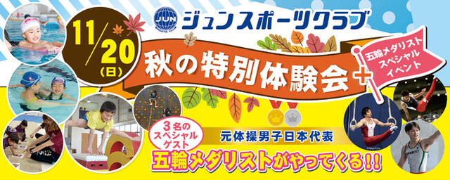 株式会社アドレ(本社:北海道札幌市、代表取締役:村重欣延、以下、当社)は、2022年11月20日(日)「ジュンスポーツクラブ月寒教室及び白石教室」において、「秋の特別体験会」を開催いたします。月寒教室では体操教室。白石教室では、体操教室のほか英語教室、スイミング教室、ボルダリング体験を実施。さらに、スペシャルイベントとして、坂本功貴さん・田中佑典さん・亀山耕平さんの体操男子元日本代表3名を講師に招いて、体操(運動)することの楽しさを知っていただけるよう特別レッスンを行っていただきます。