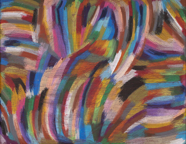 1994年生まれ。自閉症。クレヨンを塗って面を創り、色を消すようにニードルで削ってできたクレヨンのカスを集めて、粘土のようにして遊びながら作品を創る。最近ではボードやキャンバスに、クレヨンにポスターカラーを加え着色した面をニードルで削るといったように、制作方法にも幅がでてきている。実はその削りカスを集めてできたかたまり(本人はコロイチと呼んでいる)こそが本人にとって本当の作品であり、結果としてできた絵画はただの削り残したカスであり興味はない。