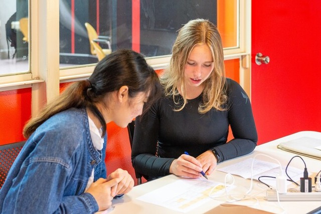 2014年に27組54名から始まったこのプログラムは、2020年の新型コロナウイルス感染症の影響により多くの留学生が日本に入国できない状況の中でも、オンラインを活用して継続して行われてきました。今期のランゲージ・エクスチェンジ・プログラムは、過去最高の56組112名の留学生と在学生が参加してスタートしました。図書館やカフェテリア、ラウンジなど、キャンパス内のさまざまな場所で、一緒に語学学習したり交流をしているペアの姿が見られます。