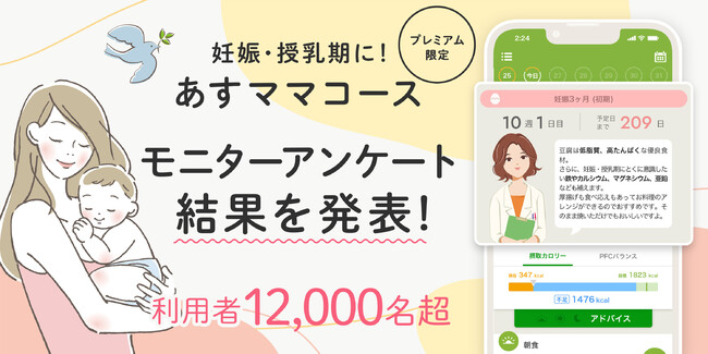 属性:AI食事管理アプリ『あすけん』ユーザーであり、募集時点で妊娠または授乳中で、「あすママコース」をお試しいただける方。