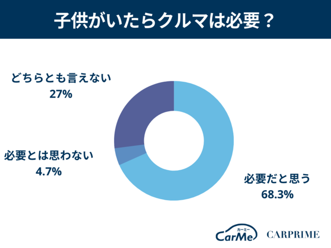 約7割という多くの方が、子供がいたらクルマが必要だと感じているようです。冒頭でもお伝えしましたが、子供の送り迎えや通院、レジャーなど、やはり子育ての中では、クルマが必要とされる場面が多いのでしょう。