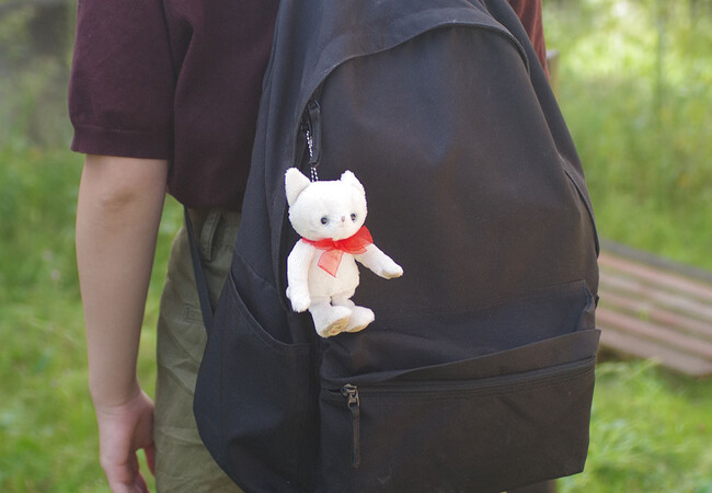 試験や試合の日には付属のボールチェーンでバッグに付けて、一緒に頑張った必勝祈願ネコを会場まで連れていけば、過度な緊張をせずにいつも通りの力が発揮できるはず。
