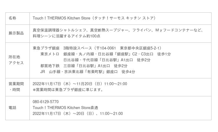 (Touch!THERMOS KITCHEN STORE特設サイト:https://www.thermos.jp/info/event/kitchenstore2022/index.html)