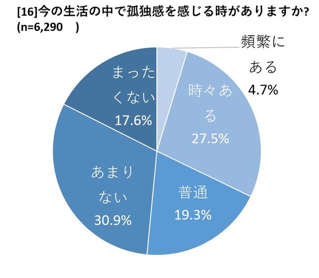 アンケートでは、回答者自身の心身の状態に関する「広聴的設問」も設定。「今の生活の中で孤独感を感じる時がありますか?」という質問に対して「時々ある」が27,5%、「頻繁にある」が4.7%と約3割が孤独感を感じていることがわかりました(子育て期 n=6,290)。
