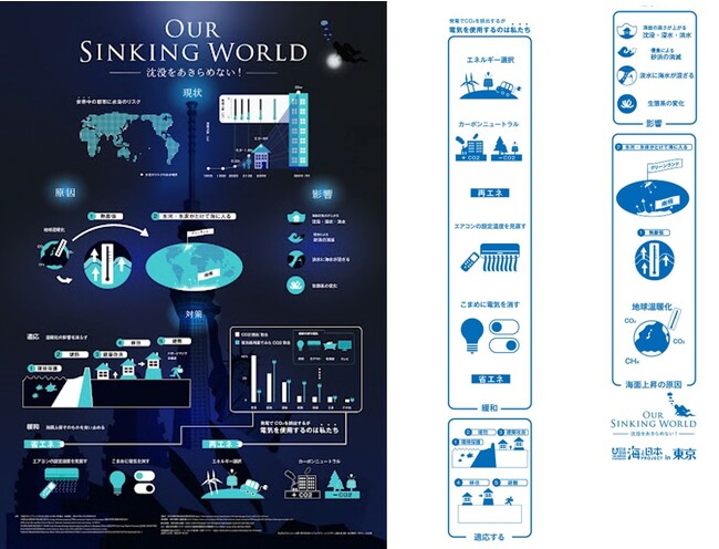 海と日本プロジェクトin東京実行委員会は、全国の小学生を対象に、御茶の水美術専門学校と協力して海洋問題をテーマにしたインフォグラフィック作品を制作する、「第二回海洋インフォグラフィックコンテスト」を開催いたしました。この度、サンシャイン水族館賞を受賞した作品がトイレットペーパーとして商品化され、サンシャイン水族館館内「ショップ アクアポケット」にて販売されます。