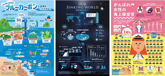 インフォグラフィックとは、情報をわかりやすく人に伝わるかたちにビジュアル化したもの。今回の「海洋インフォグラフィックコンテスト」では、膨大なデータや文章等をビジュアルの力で結びつけ、視覚的に海洋問題の興味・関心に繋げます。