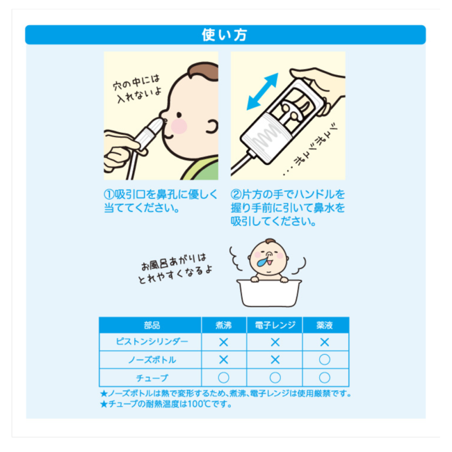粘り気のある鼻水などをやわらかくできるので、いつもの鼻水吸引がより簡単に!
