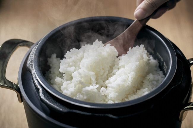 Re・De Pot は圧倒的な炊飯性能をもつ電気圧力鍋。炊飯に最適化された密閉構造と高温高圧調理により、ごはんが約25分でふっくらと炊きあがり、食感は女性や若い世代に人気の”逆アルデンテ”と言われる外硬内軟、その味は高級炊飯器に勝るとも劣らないとの評価を受けている。