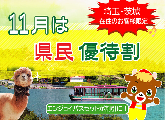 那須興業株式会社(栃木県那須町/代表取締役社長:矢澤 剛志)が運営する “那須高原 りんどう湖ファミリー牧場(以下、「りんどう湖ファミリー牧場」という)”は、11月1日(火)から11月30日(水)までの期間、埼玉県・茨城県在住のお客様へ日頃の感謝の気持ちを込めて、りんどう湖ファミリー牧場「エンジョイパスセット」が割引になる「優待割」を開催します。