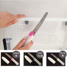■サイズ(約):全長26幅4.4厚さ2.2(有効刃長11.9)cm・重さ105g ■素材:刃…焼入特殊鋼 グリップ…ABS樹脂 エラストマー カバー・ボタン…ABS樹脂 ■3本セット内容…メタル用・ウッド用・クラフト用・専用クロス ■日本製