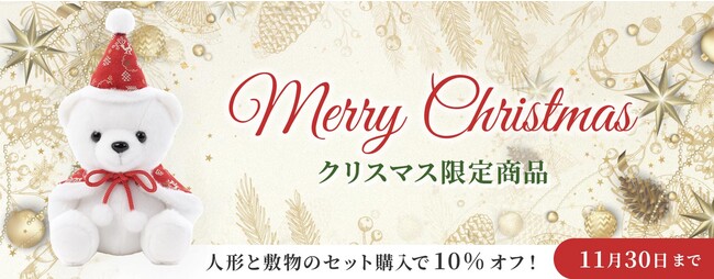 株式会社龍村美術織物(本社:京都府京都市右京区、代表取締役:龍村育)は、クリスマス限定商品「クリスマスベア」セットの【10%OFF】特別価格キャンペーンを11月1日(火)から、公式オンラインショップで実施します。