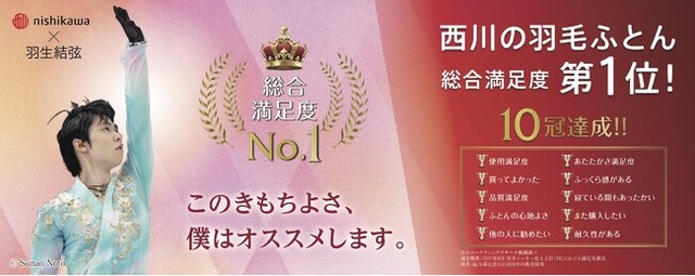 西川株式会社は、プロフィギュアスケーターの羽生結弦さんをイメージキャラクターに起用した羽毛ふとんのプロモーションを11月から実施します。 「このきもちよさ、僕はオススメします。」をキャッチコピーに、交通広告やWEB広告、店頭POPなどを展開。11月14日(月)から11月30日(水)の期間では、羽生結弦さんのオリジナルグッズが当たるTwitterキャンペーンも実施します。