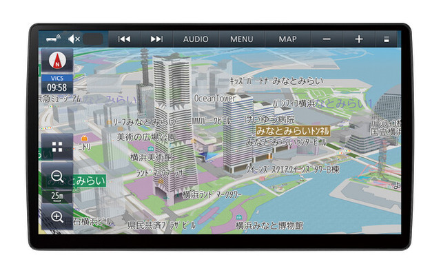 見やすい大画面は新車・既販売車ともに取り付け対応車種を490車種以上に拡大。安全・安心運転サポートの充実とストレスを感じさせない操作性で快適なドライブをサポートします。