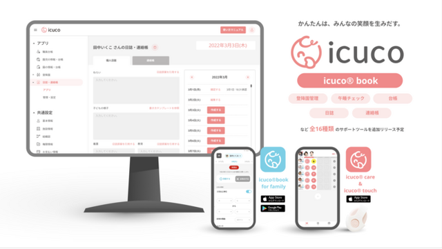また、icuco(R)︎touch & careとシステム連携可能な icuco(R)︎book もプロトタイプが導入園で稼働中です。
