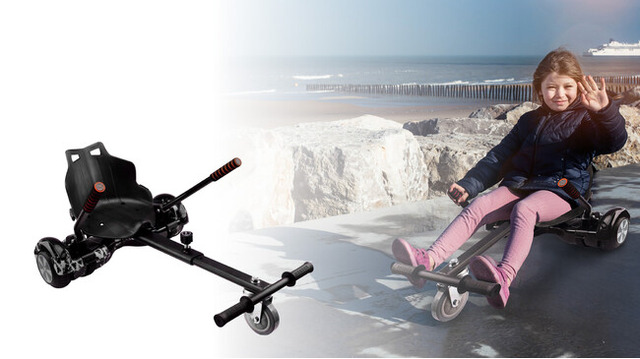 足の重心移動で運転をコントロールする立ち乗りとは違い、ハンドルで運転操作し座って乗ることができるので、お子様 も簡単に楽しくバランスボードを乗りこなして頂けます。