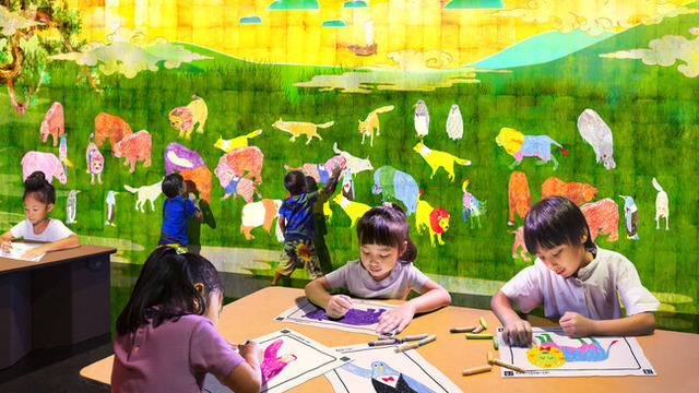 「共創」をコンセプトにした教育的なプロジェクトであり、他者と共に世界を自由に創造することを楽しむ「学ぶ!未来の遊園地」から、《お絵かきアニマルズ》を展示します。