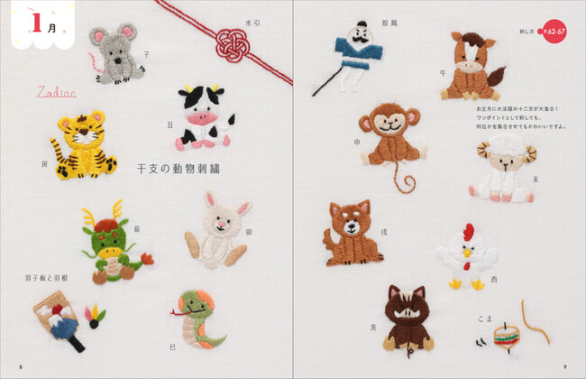 1月は全身フォルムが可愛い「干支の動物刺繍」