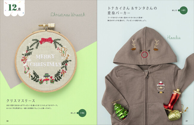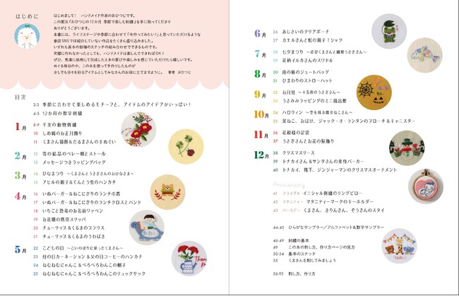 大人気ハンドメイド作家おひつじさんの12か月楽しめる季節の刺繍本です。
