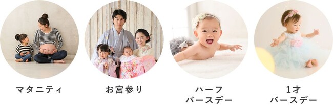 「ベイビーコレクション」はマタニティ、お宮参り、生後半年、1才誕生日と、お子さまの1年間の成長を撮影するらかんスタジオのプランです。マタニティフォトをご契約のご家族にはお得なベイビーコレクション割引チケットをプレゼントしています。