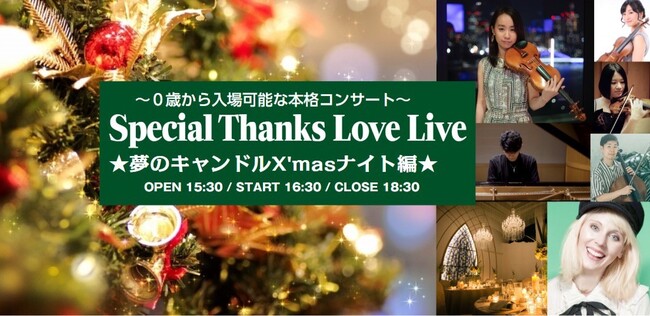 そんな皆様のために、全ての音楽好きの方に贈るスペシャルコンサート「Special Thanks Love Live~0歳から入場可能な本格コンサート~夢のキャンドルクリスマスナイト編」の開催が決定!