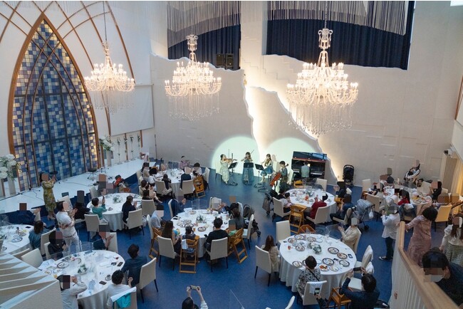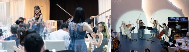 「目の前でバイオリニストやピアニストの指の動きが見える」「楽器の生音を間近で聴ける」「音楽には全然興味が無いという方へも楽しめて生演奏の魅力をお伝えする」目的で、150名キャパの会場に大人50名程のお客様人数で生演奏はマイク無しの生音にて開催。小さなお子様にもより間近で体験いただけるよう、コンサート内の一部では客席内を歩きながら演奏する演出を取り入れる事にも拘っています。