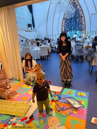 おむつ交換台、おむつ用ゴミ箱設置、授乳室、キッズチェアやカトラリー完備はもちろんの事、テーブル上にはご自由に使っていただける手口ふきシート、お席にも移動させて良いおもちゃや絵本をご用意し、キッズスペースはコンサート会場内にご用意していますので、保護者の方はキッズスペースにいてもコンサートが間近で楽しめます。また、現役0歳児担当の保育士含む、保育有資格者2名がキッズスペースでサポート!(※託児サービスではございませんので、キッズスペースにはお子様とご一緒にお越しください。)お子様とパパまたはママだけでいらっしゃる場合なども、ちょっとトイレに行く間だけ見ておいてほしい!など、ちょっとした事ですが助かるというご要望にお答えできます。