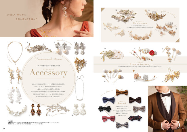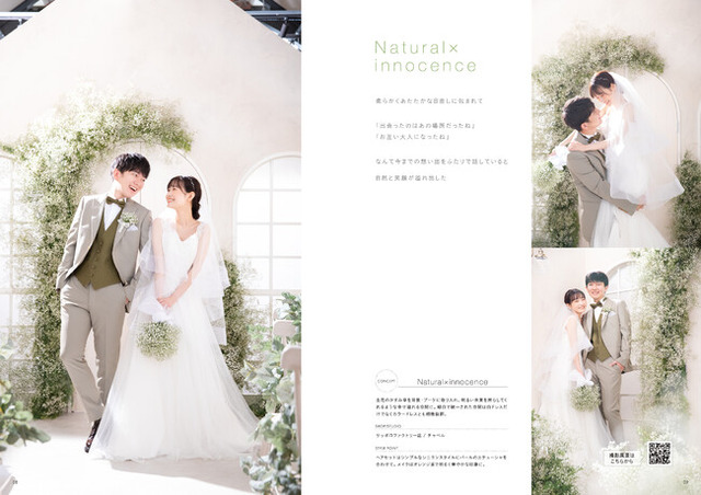ペアスタイリング(コーディネート紹介)や小物紹介、お客様インタビューなどお嫁様だけではなくお婿様もふたりで「こういうのっていいな」と夢を描ける一冊となっています。