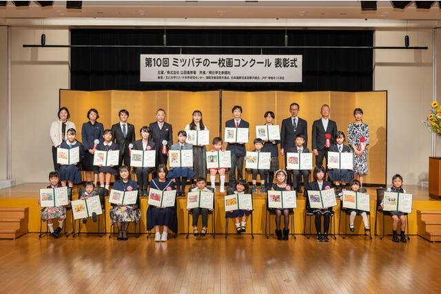 株式会社山田養蜂場(本社:岡山県苫田郡鏡野町、代表:山田英生、以下「山田養蜂場」)が主催する、第10回「ミツバチの一枚画コンクール」の入賞作品 計67点が決定しました。また、10月30日(日)に浜離宮朝日小ホール(東京都中央区築地)で、表彰式を行いました。