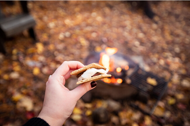 小焚台は製品パッケージのままですと、ただの金属の板です。この製品は、金属の板をたき火台に工作するクラフト、そこから生まれるたき火というアクティビティ、そしてたき火をつかった簡単な調理という一連の体験を生み出すためのものです。製品への愛着よりも、それを使った素晴らしい思い出を作ってほしいというという想いが込められています。工作、火つけと頑張ったお子様にはぜひご褒美として、一緒にスモアを作りましょう。小焚台のたき火でマシュマロを焼いて、板チョコとビスケットで挟んだおやつです。最後においしいおやつを食べることで、五感すべてをつかった体験となり、お子様にとってより深く残る思い出となるはずです。