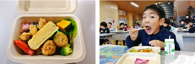 開催概要:大間町の全小学校に、ろうそくホッケのアゲ魚っ子ボールや、ひじきなどの海産物を取り入れた魚が苦手な子どもでも食べやすいお弁当「海のアゲ弁」を無償提供。オリジナル動画を視聴してもらいながら、大間の海や漁業の特徴、海の問題を、美味しく楽しく、食べて学ぶ「海の食育」を実施。