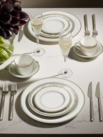 ウェディングデザインーとして大変人気のヴェラ・ウォンが デザイン を手掛けるウェッジウッドのテーブルウェアは、ドレス と同様、シンプルでありがら華やぎと品格を兼ね備えています。