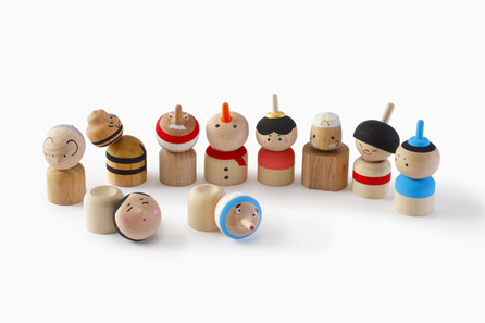 こまには昔から「人生がうまく回りますように」という願いが込められてきました。「こま人形シリーズ」は、そんな伝統を取り入れ、干支や、節句人形などの縁起物をかたどっています。世代を問わず、手に取って回したくなる魅力があります。