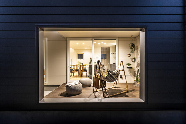 casa bagoでは、機能性や経済性はもちろんのこと、日光や風を健康的に享受して活かす「豊かさのあるライフスタイル」を追求しました。casa bagoの特長であるオープンウォールは、一般的には庭となるスペースをやさしく包み、光と風を美しく通します。