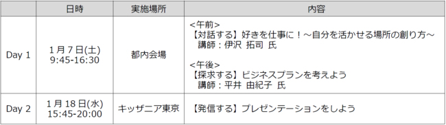 3歳から15歳までのこども達の職業・社会体験施設「キッザニア東京(2006年10月開業)」「キッザニア甲子園(2009年3月開業)」「キッザニア福岡(2022年7月開業)」の企画・運営行うKCJ GROUPが、2018年より中学生を対象に実施しているワークショップです。