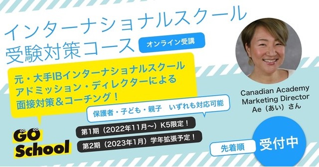 GO Schoolのインターナショナルスクール受験対策コースは、グループ校であるアオバジャパン・インターナショナルスクールにて入学選考をしていたアドミッション・ディレクターを専任アドバイザーとして迎え、ご家庭の受験対策をフルサポートいたします。