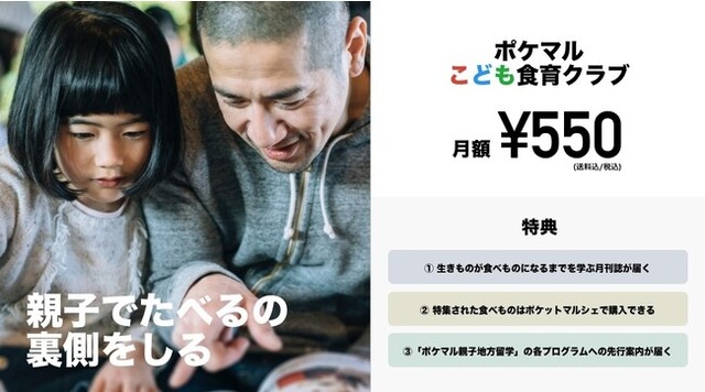 当社は、親子で食べものの裏側を学ぶ「ポケマルこども食育クラブ」を開設します。本サービスでは、生きものが食べものになるまでが学べる月刊誌をお届けします。本誌で特集された食べものはポケットマルシェ上で購入することができます。また、サービスの加入者に対して、小学生のお子さんと親御さんが生産者のもとで自然に触れて命の大切さを学ぶ地方留学プログラム「ポケマル親子地方留学」の先行案内を実施します。