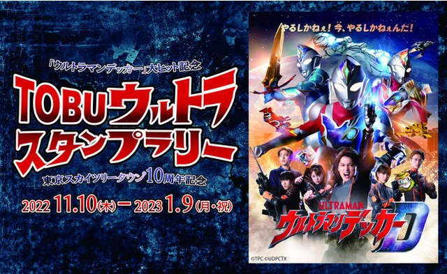 東武鉄道では、2022年11月10日(木)から2023年1月9日(月・祝)までの期間、東京スカイツリータウン(R)10周年を記念して、ウルトラマンとコラボレーションした「TOBUウルトラスタンプラリー」の第2弾を開催します。通常のスタンプを利用するリアルスタンプラリーとともに、TOBU POINTアプリを利用したデジタルスタンプラリーも同時開催!スタンプを集めるとオリジナルのウルトラマン&電車ステッカーやステッカーホルダー、さらにWチャンス賞で豪華景品がもらえるチャンスも!ぜひ、ご家族やお仲間と一緒にお楽しみください。
