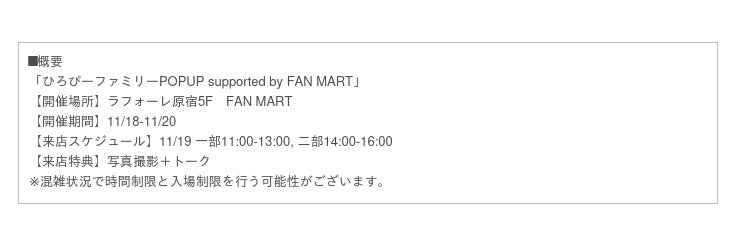 株式会社AKEY(東京都世田谷区北沢 代表:秋山吏功、以下当社)は大人気インフルエンサーと会えるポップアップブランド「FAN MART」にて、大人気ファミリーインフルエンサー「ひろぴーファミリー」のコラボイベントを開催いたします。