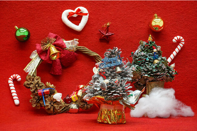 本イベントでは、ツタを使ったリースや松ぼっくりで作ったミニツリーに、ドングリや水族園ならではのイルカのフィギュア、貝がらなどのオーナメントを使って、ご家族でオリジナルリースやミニツリーを作ることができます。自分だけのクリスマスリースやミニツリーを飾って、クリスマス気分を一緒に盛り上げましょう。