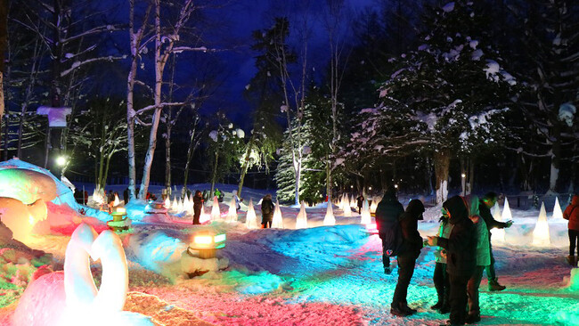 新富良野プリンスホテルに隣接するナイトアクティビティエリア。雪や氷で造られた「アイスバー」や「犬ぞり体験」など、雪と氷の世界をお楽しみいただけます。