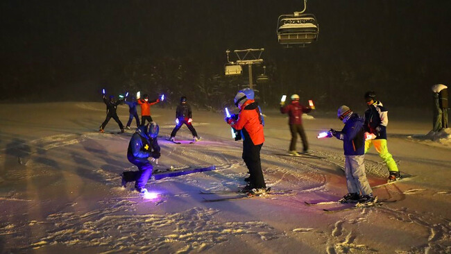 第55回ふらのスキー祭りを舞台に、多くのお客さまが参加いただける光のイベント。たい松をイメージしたカラートーチを持ちナイターゲレンデを滑走いたします。
