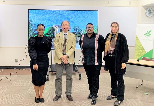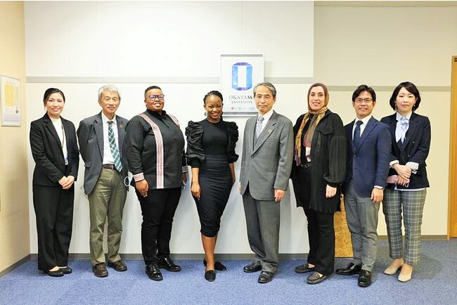 国立大学法人岡山大学(本部:岡山市北区津島中、学長:槇野博史)と国連貿易開発会議(UNCTAD)による「途上国からの若手女性研究者のための共同研究・研修コース:Young Female Scientist Programme in Japan」の第二期となる若手女性研究者3人が2022年10月25日に来学し、槇野博史学長らを表敬訪問しました。