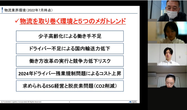 本イベントでは、内定者が船井総研ロジについての理解を深め、入社後によいスタートダッシュが切れるよう毎月開催されています。