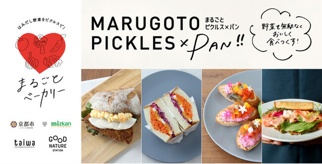 ミツカングループ(愛知県半田市、以下ミツカン)は、京都市における食品ロス削減の取り組みの一つである、野菜をまるごと使ったピクルスとパンを組み合わせた「まるごとベーカリー」として、学校法人大和学園 京都製菓製パン技術専門学校(以下、大和学園)と株式会社ビオスタイルが運営する複合型商業施設GOOD NATURE STATION (以下GOOD NATURE STATION)と、「食品ロス×パン×ピクルス」をテーマにしたピクルスサンドを開発いたしました。
