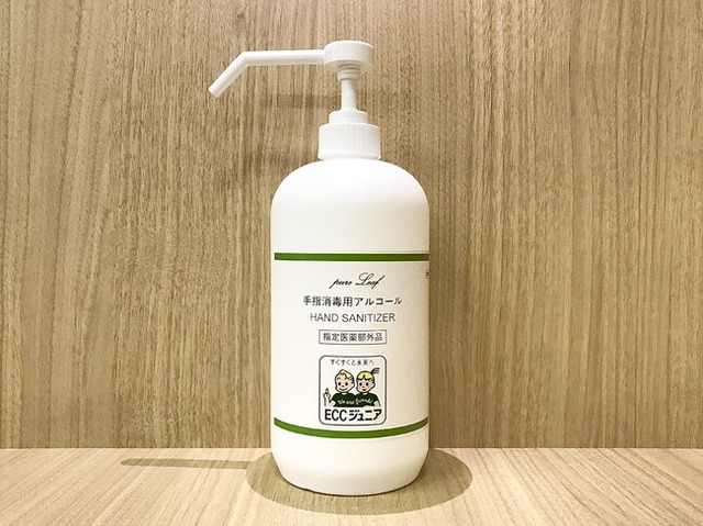 株式会社ECCが展開する英会話教室「ECC ジュニア」において、全国約 1 万教室に当社のアルコ ール手指消毒液が採用されました。お子様が安心・安全に教室へ通える環境を第一に、消毒効果の期待が高い高濃度エタノール配合品(有効成分:エタノール 76.9~81.4vol%)をご使用いただいております。同教室を象徴するデザインを印刷した、親しみ溢れるオリジナルパッケージにてご提供しております。