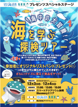 スマートアクアリウム静岡(静岡市葵区:松坂屋静岡店本館7階)では、2022年12月3日(土)、4日(日)の2日間、一般社団法人 子ども冒険体験創造ラボによるVirtual Ocean Project主催イベント「海中の大冒険! "海"を学ぶ探検ツアー」を開催いたします。