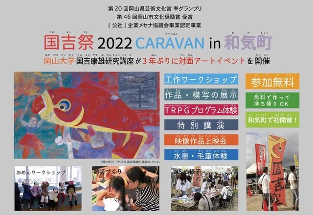国吉祭は、「国吉康雄」という岡山の文化芸術資源を地域に持ち込むことで、地域に伝わる伝統や文化を再確認し、世代、地域を越えた交流の場を生み出すために開催されてきました。「国吉祭2022 CARAVAN in 和気」を実施するため、学生たちは取材と企画に取り組んでいます。