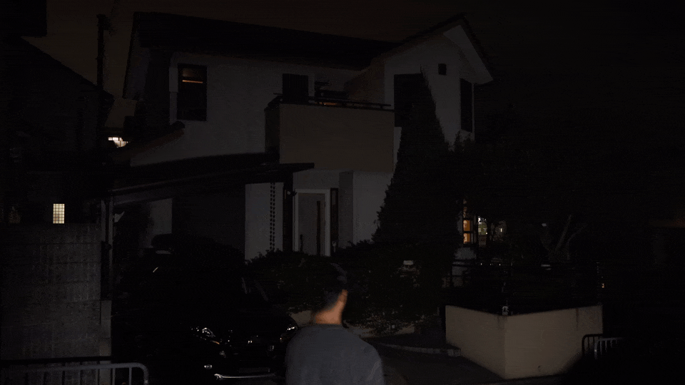 不審者が家に近づいた時、複数のセンサーライトが一斉に反応。
