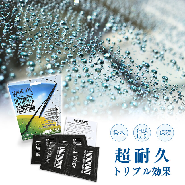 その中で当店が取り扱うのは自動車のフロントガラスに塗布するガラスコーティング剤で、一般的に認知されているシリコンやフッ素成分ではなくガラスの元成分である二酸化ケイ素を成分としたガラス系コーティング剤で約1年間の耐久性と様々な保護効果をもたらします。