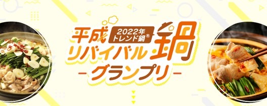 本格的な冬の到来とともに、恋しくなるのが体の芯から温まる鍋です。株式会社ぐるなび(本社:東京都千代田区、代表取締役社長:杉原章郎)は、2022年「トレンド鍋(R)(※)」である“平成リバイバル鍋(TM)”の全国No.1を決定する「“平成リバイバル鍋(TM)”グランプリ」の一般投票を11月15日(火)より開始します。